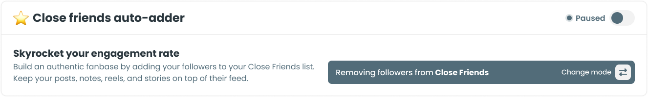 You will find the Close Friends Auto-adder available on Nitreo’s Speed plan. Turn it on, let it work in the background, and focus on posting the kind of content your audience will keep coming back for.