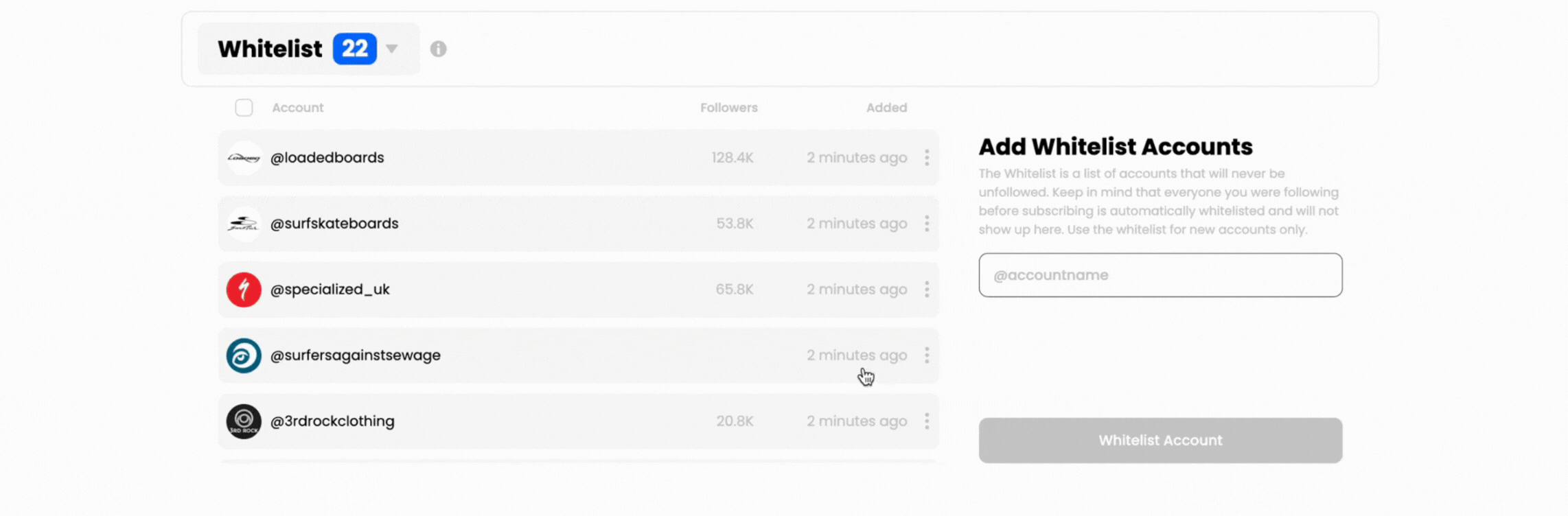 When you first set up your account, Nitreo automatically whitelists everyone you were already following. That way, it does not accidentally unfollow a friend, a client, or someone you actually care about keeping in your feed.